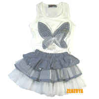 เสื้อผ้าเด็กผู้หญิงลายผีเสื้อสวย พร้อมกระโปรงบาน
