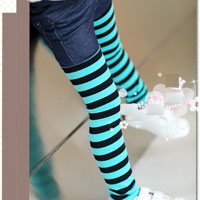 กางเกงยีนส์เด็ก ขายาว ช่วงขาลายขวางสีครีมสลับเขียว