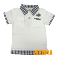 เสื้อโปโลเด็กผู้ชาย สีขาว ปกสก็อตสีขาวดำ