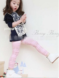 เลกกิ้งเด็กผู้หญิง สีชมพูลายฉลุดอกไม้ มีให้เลือก 2 สี สีขาว และ สีชมพู