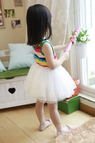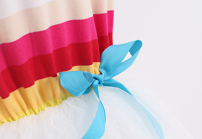เดรสเด็กผู้หญิง เสื้อลายขวางหลากหลายสี กระโปรงบานฟูสีขาว