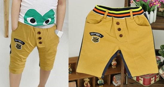 กางเกงเด็กผู้ชาย ข้างหน้าสีเหลือง ด้านหลังสีน้ำเงิน