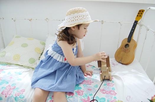 ชุดเดรสเด็กผู้หญิง สายเดี่ยว สีฟ้า