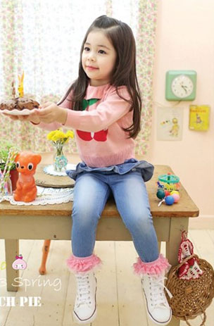กางเกงยีนส์เด็กผู้หญิง มีระบายกิ๊บเก๋