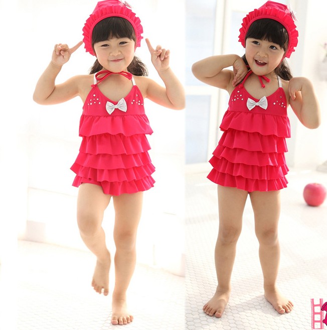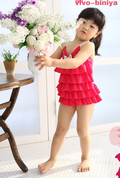 ชุดว่ายน้ำเด็ก VIVO BINIYA สีชมพูเข้มระบายชั้นๆ พร้อมหมวกเข้าชุด( หมดค่ะ)
