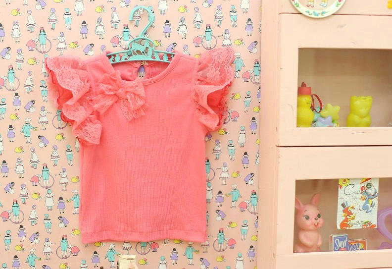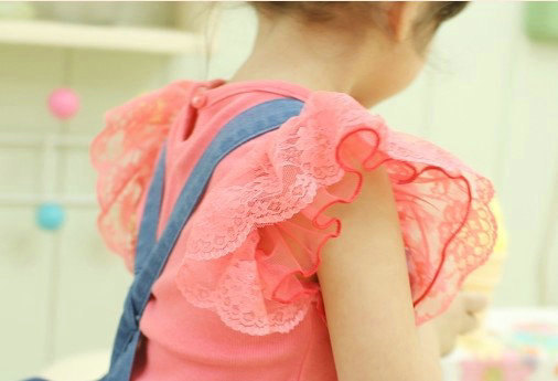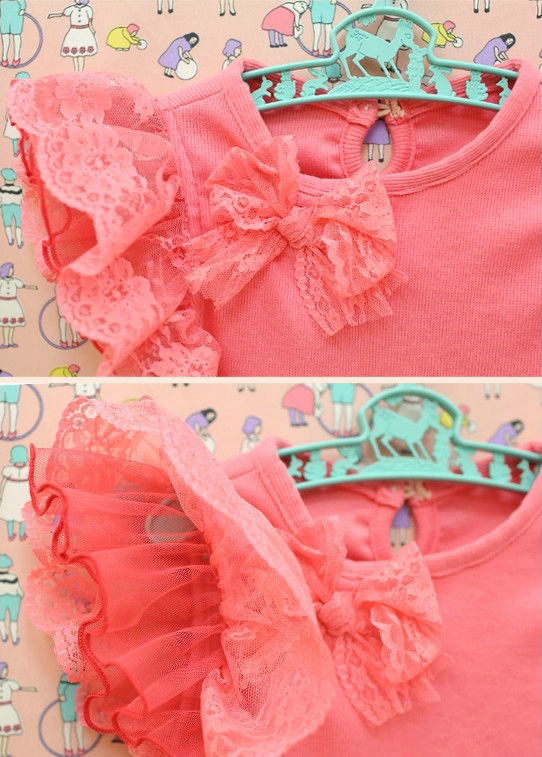 เสื้อเด็กผู้หญิง สีแดง แขนลูกไม้ระบาย