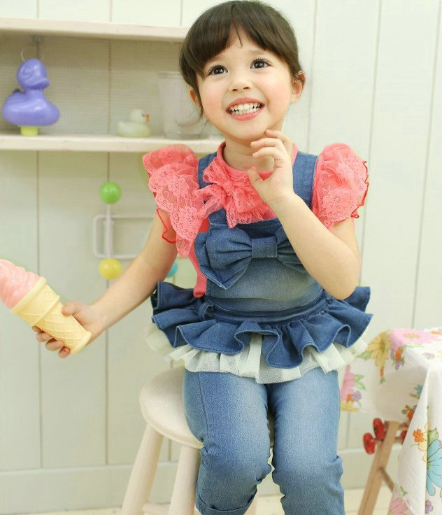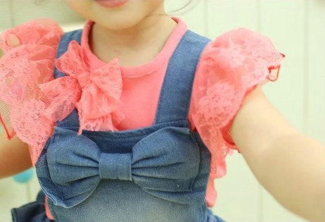 เสื้อเด็กผู้หญิง สีแดง มีโบว์ที่อก แขนลูกไม้ระบาย