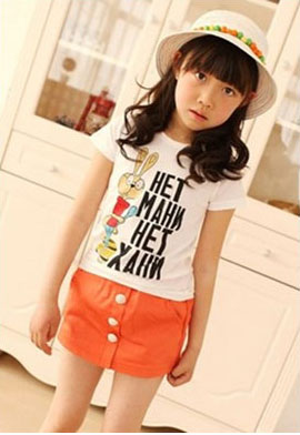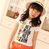 เสื้อเด็กผู้หญิง คอกลม สีขาว ลายกระต่ายน่ารัก ใส่คู่กับกางเกงยีนส์ก็ได้ หรือจะใส่กับกางเกงกระโปรงตามแบบดังรูปก็น่ารักจ้า
