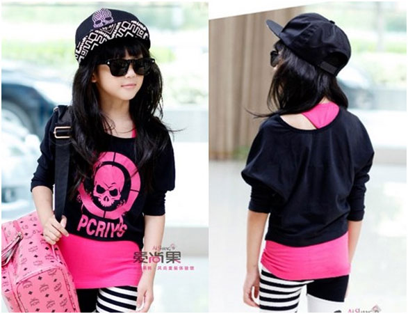 เสื้อเด็กผู้หญิง เสื้อกล้ามสีชมพู + เสื้อตัวนอกสีดำแฟชั่น ดูเป็นสาวน้อยเก๋ๆ ทะมัดทะแมงค่ะ สำหรับเด็กโตสูง 120-160 ซม.( หมดค่ะ )
