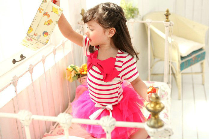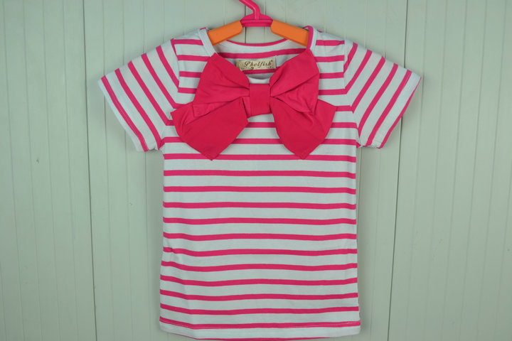 เสื้อเด็กผู้หญิง ลายขวางสีชมพูเข้มสลับขาว มีโบว์ที่อกตรงกลาง มี 2 ให้เลือกค่ะ สีชมพูเข้ม และ สีน้ำเงิน