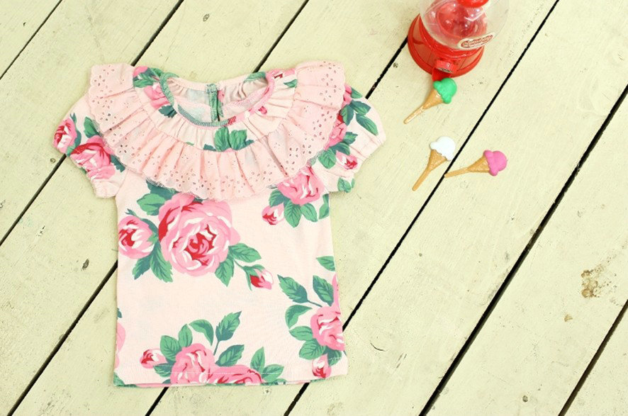 เสื้อ เด็กผู้หญิง สีชมพู ลายดอกไม้ แขนสั้น ลูกไม้ระบายสีชมพู ประดับรอบคอ ช่วยให้ชุดดูน่ารัก กิ๊บเก๋ ไม่ซ้ำแบบใครค่ะ มี ให้เลือก 2 สี สีขาว และ สีชมพู