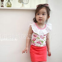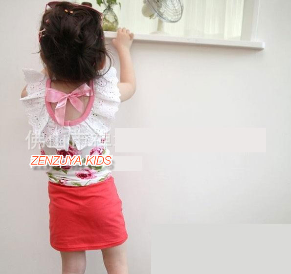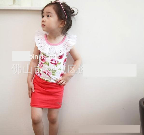เสื้อเด็กผู้หญิง สีขาว ลายดอกไม้ คอระบายลูกไม้