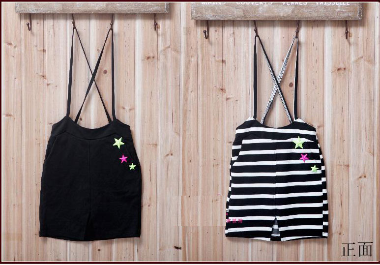 กระโปรงเอี๊ยมเด็กผู้หญิง สีดำ สำหรับเด็กสูง 120-160 ซม. ติดดาวสีสันน่ารักกิ๊บเก๋ มี 2 สีให้เลือกค่ะ สีดำ และ ลายขวางสีดำสลับขาว