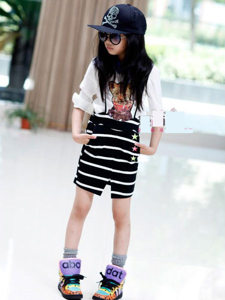 กระโปรงเอี๊ยมเด็กผู้หญิง ลายขวางสีดำสลับขาว สำหรับเด็กสูง 120-160 ซม. ติดดาวสีสันน่ารักกิ๊บเก๋ มี 2 สีให้เลือกค่ะ สีดำ และ ลายขวางสีดำสลับขาว