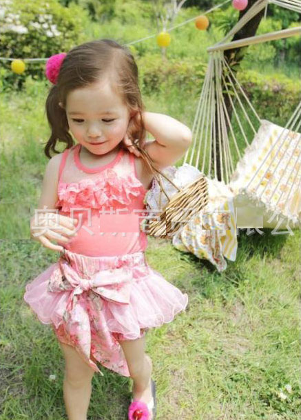 เสื้อเด็กผู้หญิง สีแดง แขนกุด ซีทรูที่อกพร้อมระบายน่ารัก
