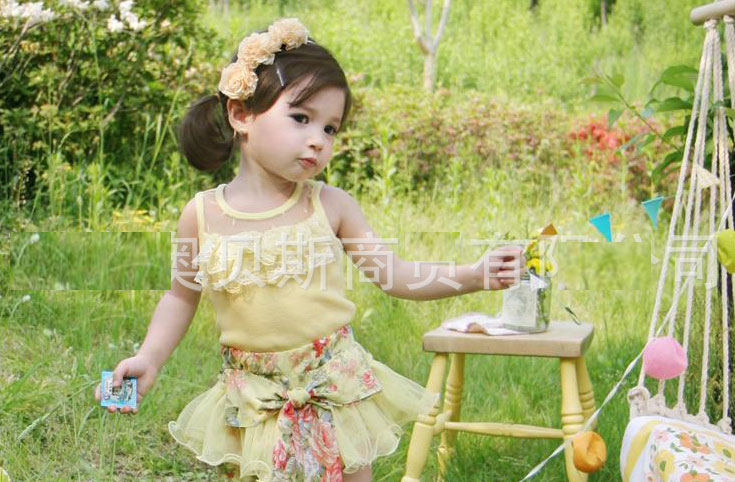 เสื้อเด็กผู้หญิง สีเหลือง แขนกุด ซีทรูที่อกพร้อมระบายน่ารัก (หมดค่ะ)