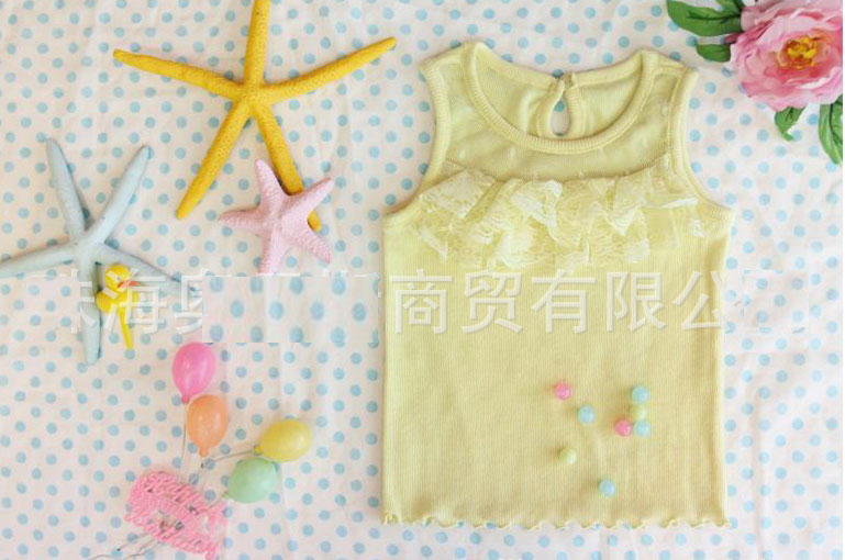 เสื้อเด็กผู้หญิง สีเหลือง แขนกุด ซีทรูที่อกพร้อมระบายน่ารัก มีให้เลือก 2 สีค่ะ สีแดง และ สีเหลือง