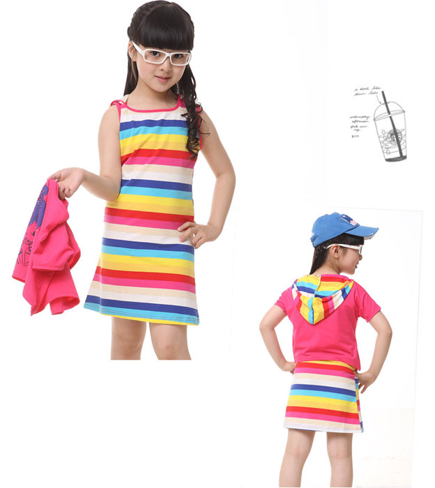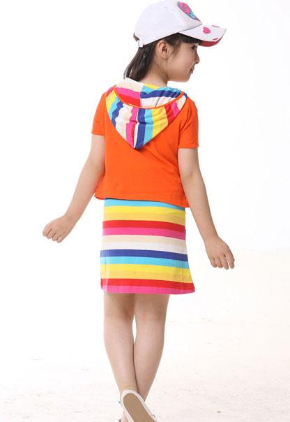 ชุดเดรสเด็กผู้หญิง สำหรับเด็กโต สูง 110-160 ซม. ชุดเดรสแขนกุดหลายหลายสี คลุมทับด้วยเสื้อคลุมแขนสั้นมีหมวกฮูด สีส้ม แฟชั่นน่ารักๆสำหรับสาวน้อย มี 2 สี ให้เลือกค่ะ สีส้ม และ สีชมพู