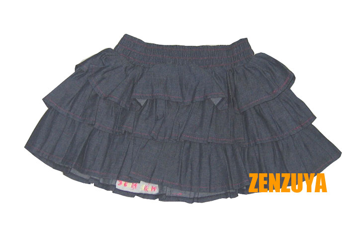 กระโปรงยีนส์ระบายเด็กผู้หญิง ระบาย 3 ชั้น ตกแต่งด้วยกระดุมตรงกลางกระโปรง แฟชั่นกระโปรงระบายกำลังมาแรงสำหรับคุณหนูๆ