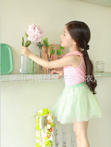 กระโปรงเด็กผู้หญิง พองฟูสีเขียวอ่อน