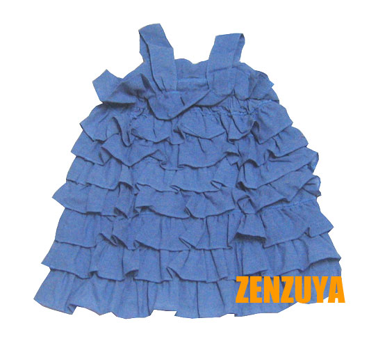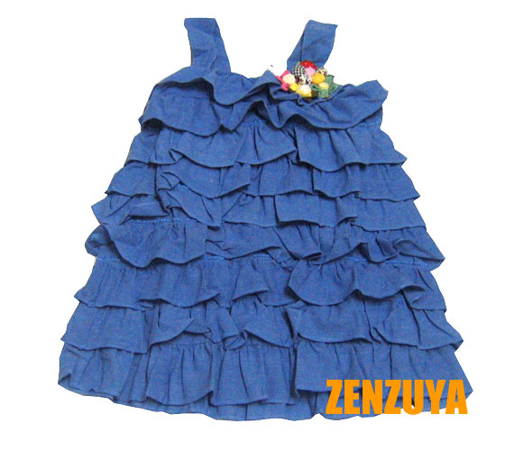 เดรสเด็กผู้หญิง สีน้ำเงินมีดอกไม้ที่อก