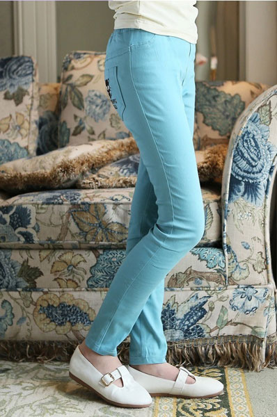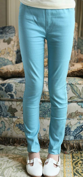 กางเกงเด็กผู้หญิง สีฟ้า ขายาว เอวยางยืดสวมใส่ง่าย สำหรับเด็กโต สูง 120-160 ซม. มีให้เลือก 3 สีค่ะ สีขาว สีเหลือง สีฟ้า
