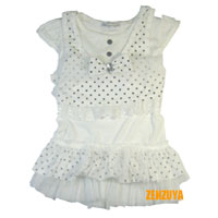 เสื้อผ้าเด็กผู้หญิงแฟชั่นสีขาว มีเสื้อกั๊กลายจุดคลุม ด้านล่างของเสื้อมีระบายกิ๊บเก๋น่ารัก