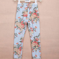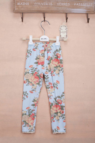เลกกิ้งเด็กผู้หญิง สีฟ้า ลายดอกไม้
