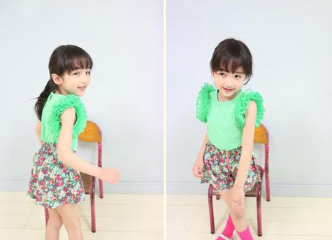 เสื้อเด็กผู้หญิง คอกลม สีเขียว มีระบายที่แขน ผ้านิ่มใส่สบายค่ะ