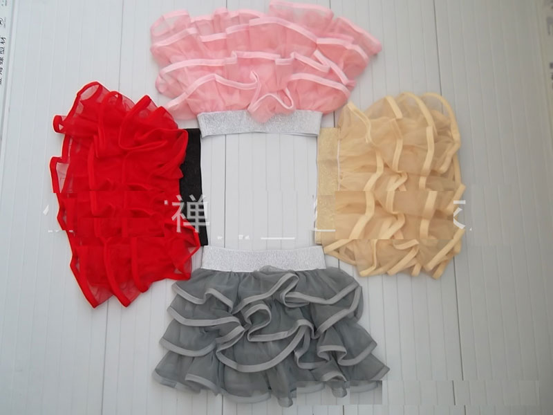 กระโปรงเด็กผู้หญิง ระบายชั้น สีครีม เอวยางยืด ขอบเอววิบวับ แบรนด์ Phelfish มีให้เลือก 3 สี สีแดง ชมพู ครีม