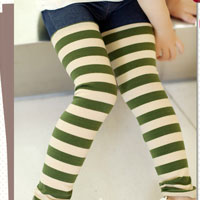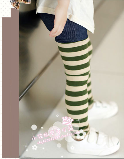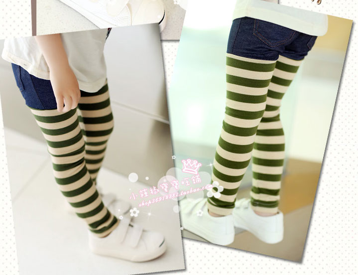 กางเกงยีนส์เด็ก ขายาว ช่วงขาลายขวางสีครีมสลับเขียว