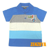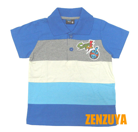 เสื้อโปโลเด็กผู้ชาย สีน้ำเงิน สลับขาว เทา ฟ้า