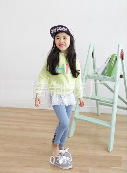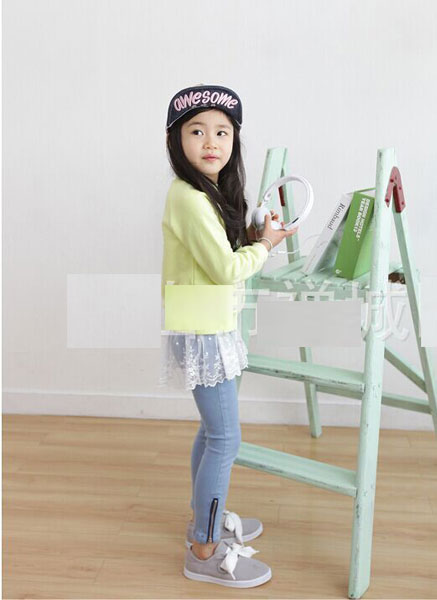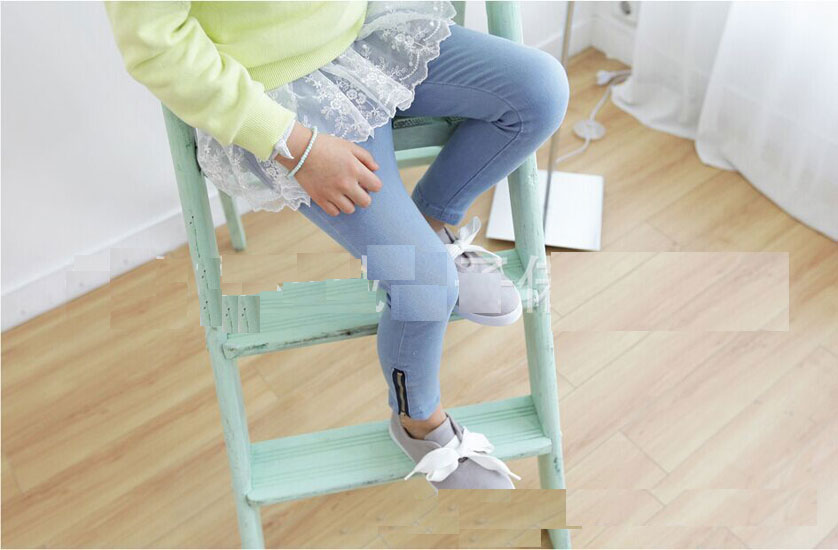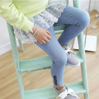 กางเกงเด็กผู้หญิง สีฟ้า ขายาว มีซิปปลายขา