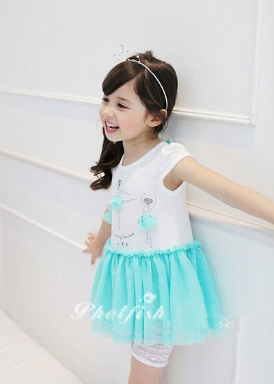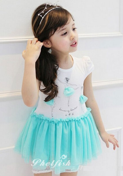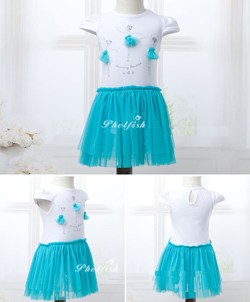 ชุดเดรสเด็กผู้หญิง เสื้อขาว ประดับด้วยผ้าสีเขียวเล็กๆ กระโปรงสีเขียวพองฟู แบรนด์ Phelfish สินค้าคุณภาพดีค่ะ