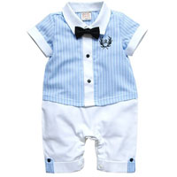 ชุดบอดี้สูทเด็กผู้ชาย เสื้อแขนสั้นสีฟ้า ผูกหูกระต่าย กางเกงสีขาว มีกระดุมที่เป้า