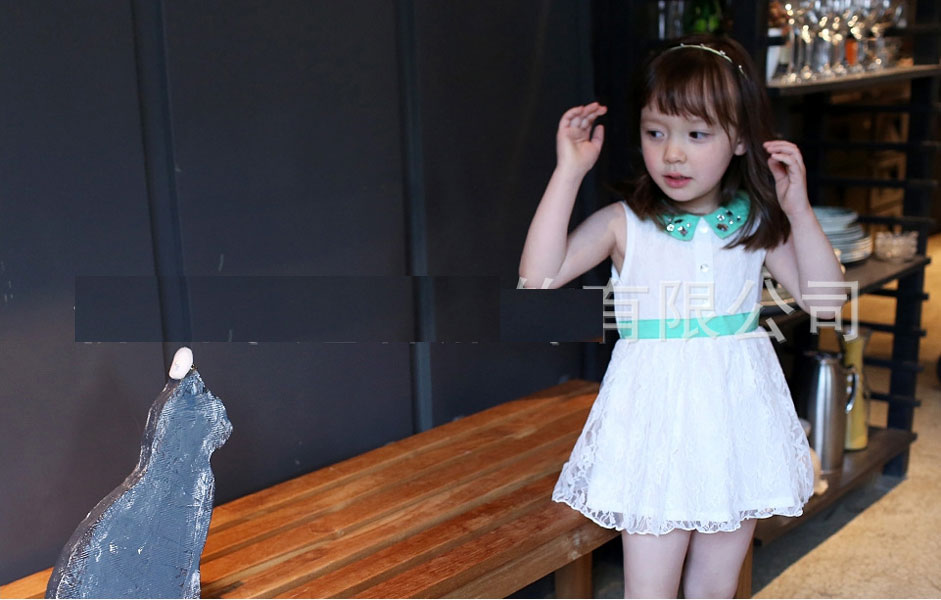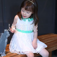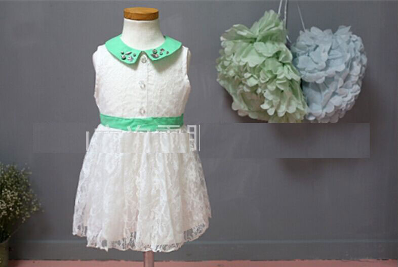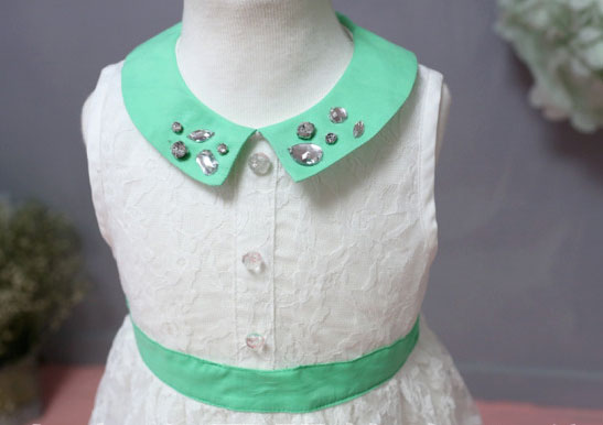 ชุดเดรสเด็กผู้หญิง สีขาว คอปกเขียว ติดพลอย คาดเอวสีเขียว ดูหวานน่ารักค่ะ แบรนด์ Phelfish สินค้าคุณภาพดีค่ะ