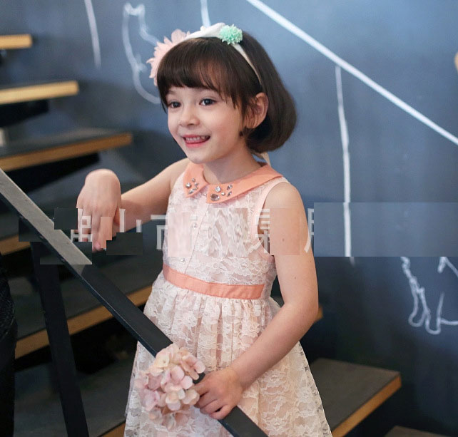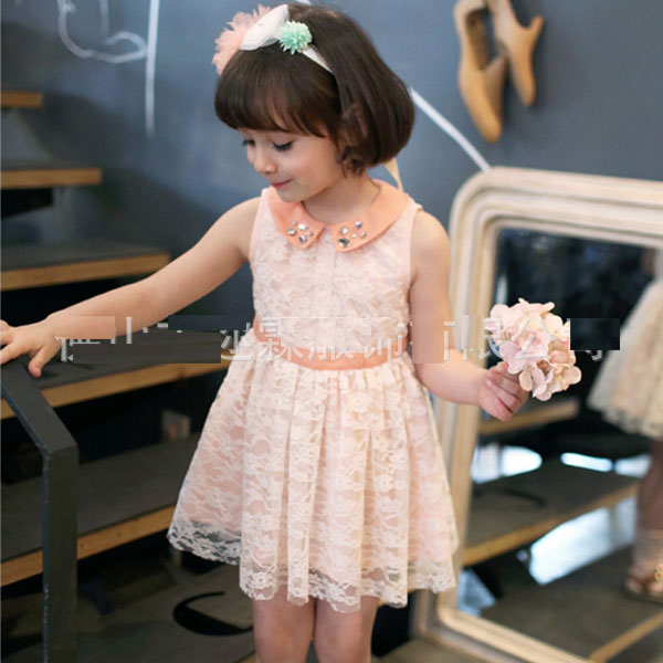 ชุดเดรสเด็กผู้หญิง สีโอรส คอปกประดับพลอย กระโปรงระบาย ดูหวานน่ารักค่ะ แบรนด์ Phelfish สินค้าคุณภาพดีค่ะ