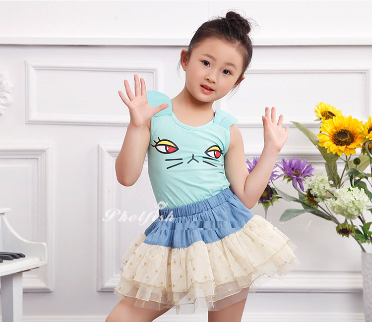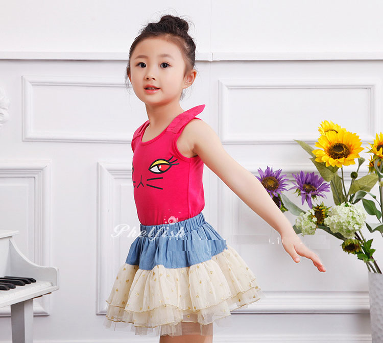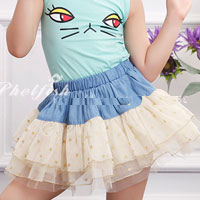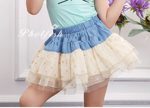 กระโปรงเด็กผู้หญิง ช่วงบนเป็นยีนส์ ช่วงล่างเป็นระบายสีครีม จุดสีทอง เอวยางยืด แบรนด์ Phelfish สินค้าคุณภาพดีค่ะ