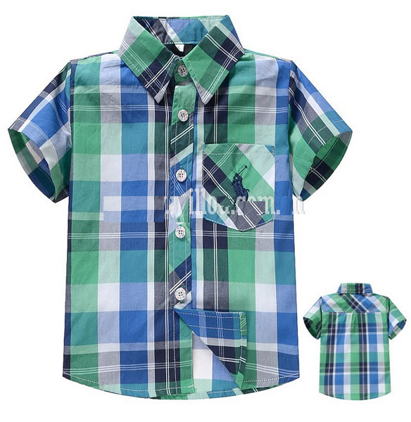 เสื้อเด็กผู้ชาย ลายสก็อต สีเขียวสลับฟ้า