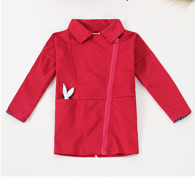 เสื้อแจ็กเก็ตเด็กโต สีแดง พร้อมตุ๊กตากระต่ายเล็กๆใส่ในกระเป๋าเก๋ๆ