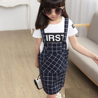 เอี๊ยมกระโปรงสีดำ ลายตารางสีขาว
