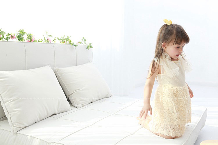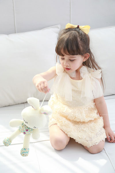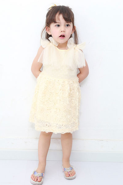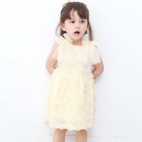 ชุดเดรสเด็กผู้หญิง สีโอรส ติดโบว์ที่ไหล่ ทั้ง 2 ข้าง