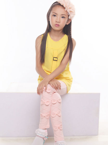 เลกกิ้งเด็กผู้หญิง สีชมพู ติดโบว์