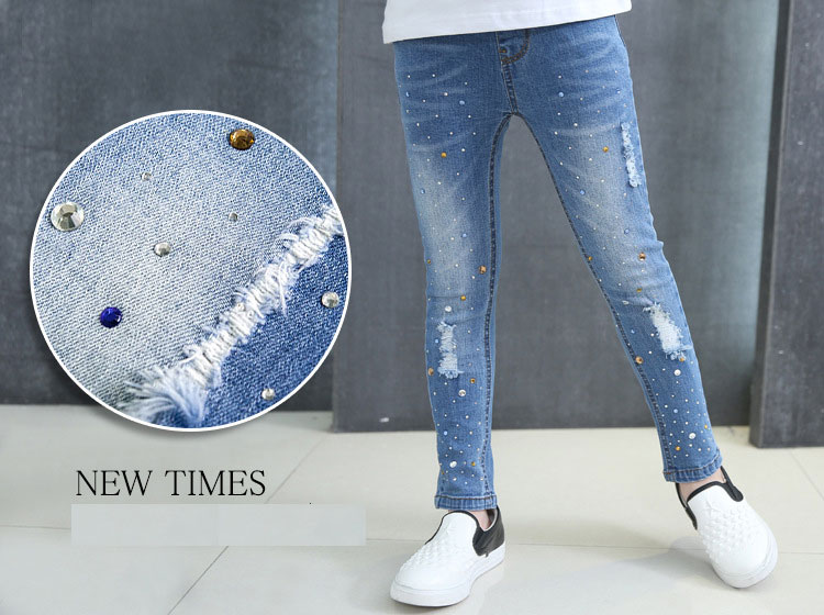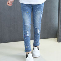 กางเกงเด็กผู้หญิง ยีนส์ขายาว เอวยางยืด สวมใส่ง่าย