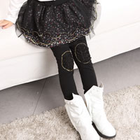 เลกกิ้งกระโปรงระบาย ลายดอก สีดำ หัวเข่าประดับดอกไม้