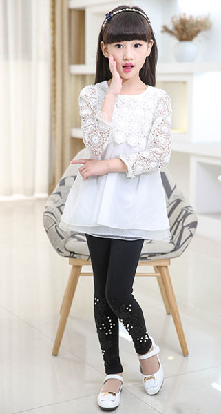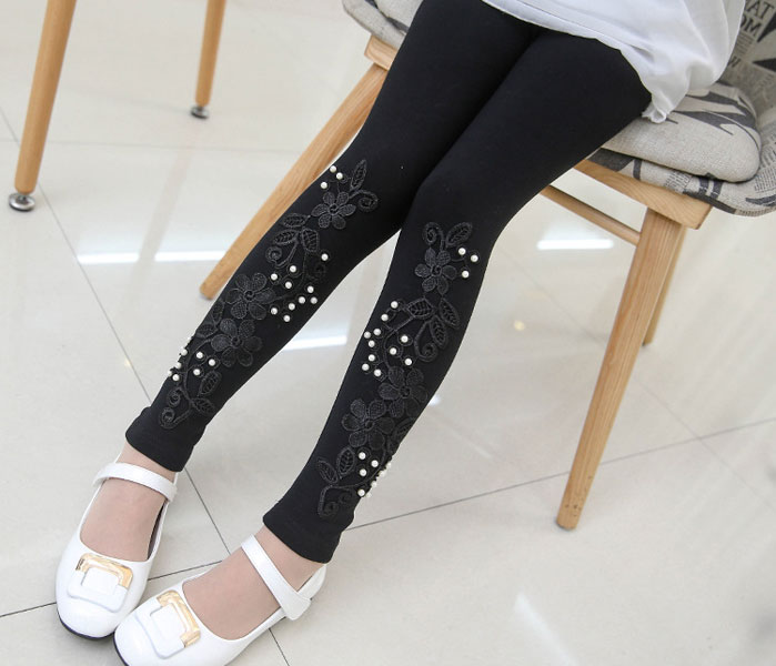 เลกกิ้งเด็กผู้หญิง สีดำ ลายดอกไม้