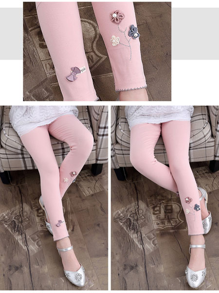 เลกกิ้งเด็กผู้หญิง สีชมพู ลายดอกไม้ ติดโบว์