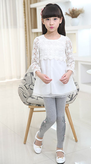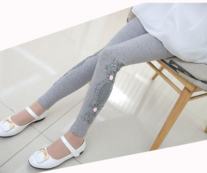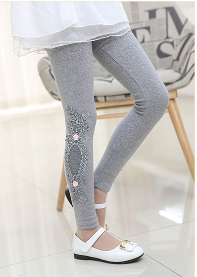 เลกกิ้งเด็กผู้หญิง สีเทา ลายดอกไม้