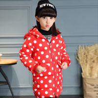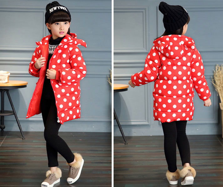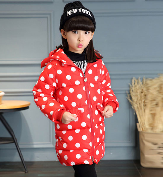 เสื้อหนาวสีแดง ลายจุดขาวพร้อมฮูดสีสันสดใส