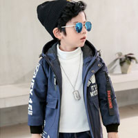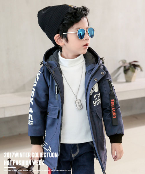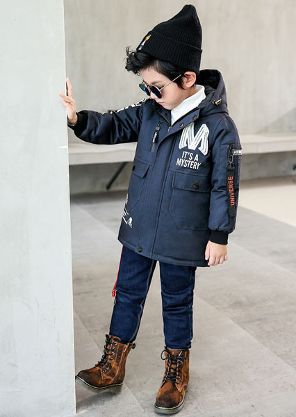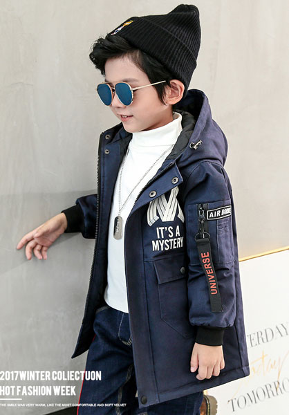 เสื้อหนาว เด็กผู้ชาย สีน้ำเงิน พร้อมหมวกฮูด